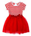 100% cotton bodice and lining with tulle overlay and ribbon tie.